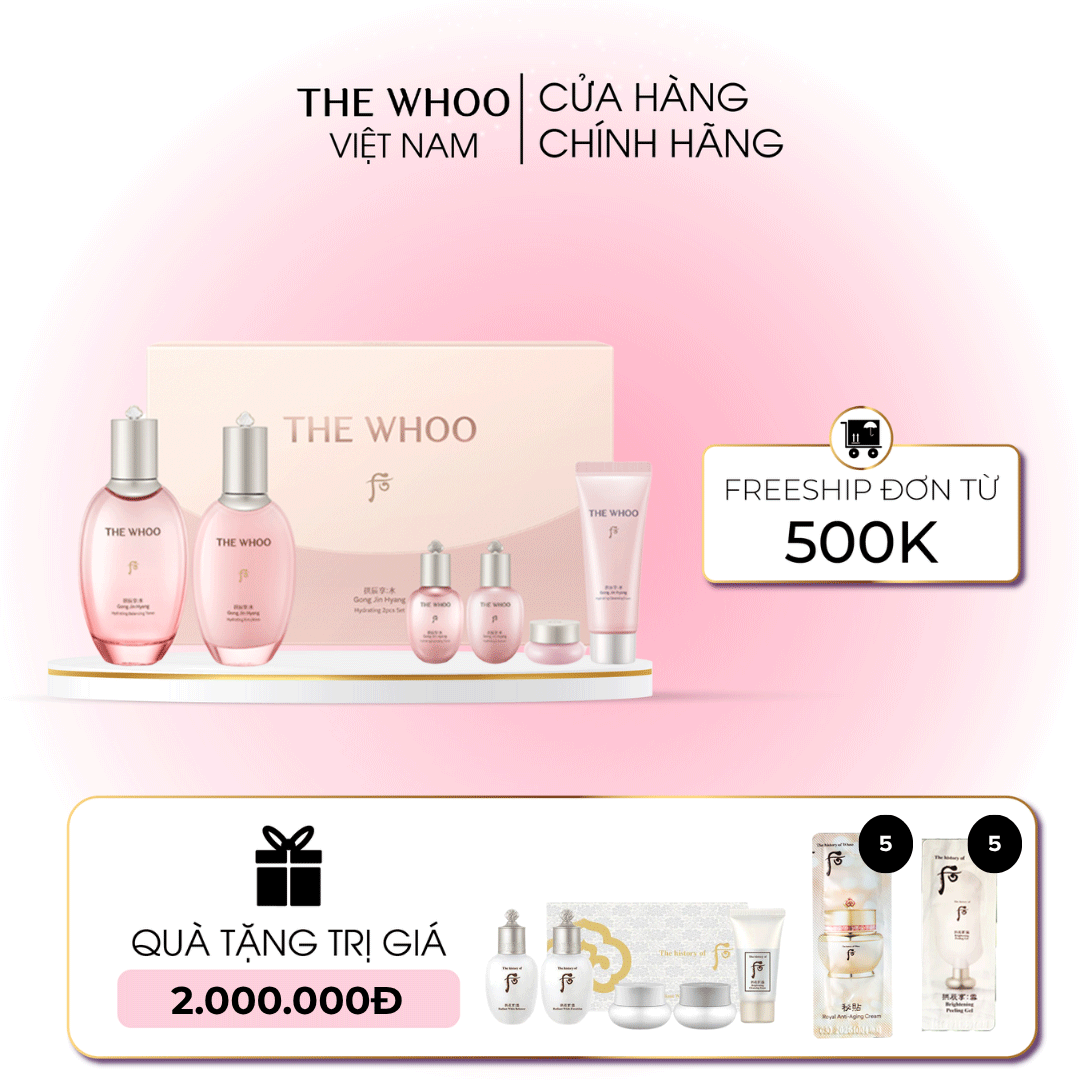 - Nước hoa hồng Whoo Gongjinhyang Soo Hydrating Balancer (150ml + 20ml) : Với chiết xuất từ thảo dược cung cấp độ ẩm và làm cho làn da tươi và chảy nước.Thúc đẩy độ đàn hồi cho làn da