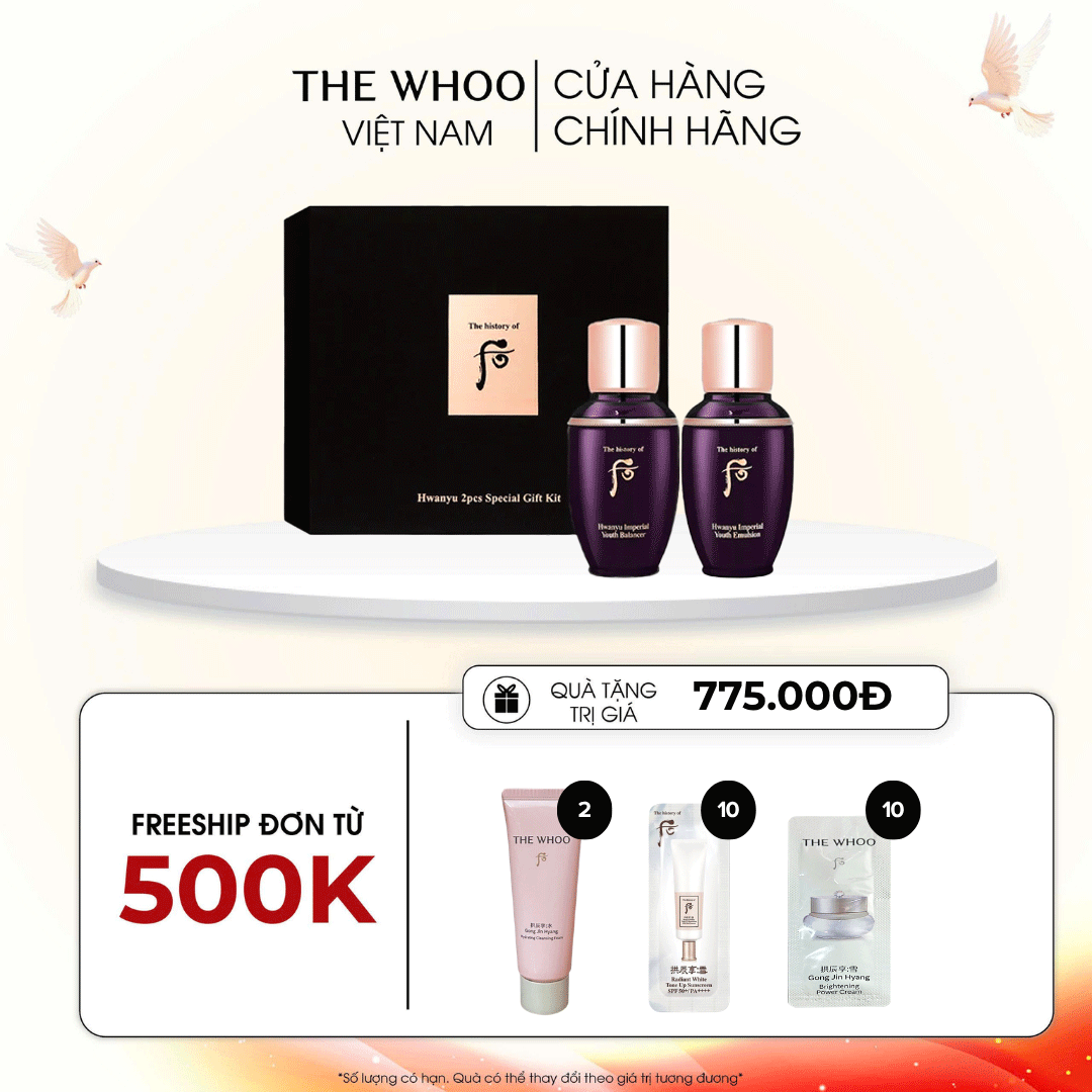 Bộ dưỡng da Whoo Hwanyu Imperial Youth mini 2 pcs thuộc dòng sản phẩm Hoàn lưu cao phiên bản mới nhất của thương hiệu mỹ phẩm đình đám Whoo. Được biết đến như một bí kíp phục hồi làn da lão hóa, các thành phần trong bộ sản phẩm giúp nuôi dưỡng, tái tạo làn da từ bên trong, trả lại cho da vẻ rạng rỡ, mịn màng, căng tràn sức sống
