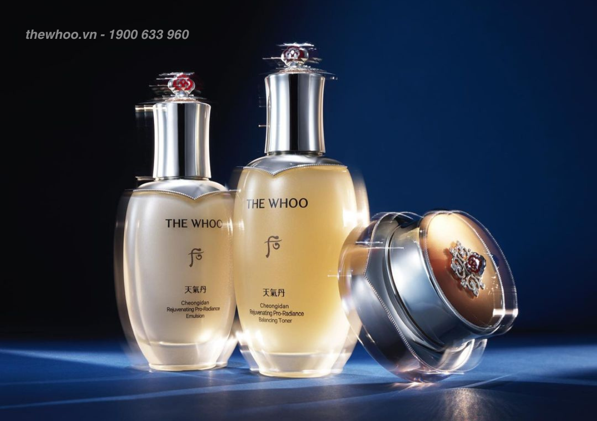 Dòng Cheongidan của The Whoo nổi bật với thiên khí bí đơn - bài thuốc dưỡng nhan nổi tiếng của Từ hy Thái hậu gồm các bổ dược hàng đầu Hoàng cung như Cây hoàng kim, Lộc nhung phấn cốt, Sâm núi Ngọc Châu, bột Ngọc bích. Đây là những nguyên liệu quý được kết hợp với nhau để bào chế, dựa trên công thức bí truyền của triều đình Hàn Quốc cổ đại, giúp tái tạo tế bào, kiểm soát tình trạng bừng đỏ, cải thiện độ đàn hồi, lưu thông khí huyết mạnh mẽ và khơi dậy ánh sáng tự nhiên từ sâu bên trong da.