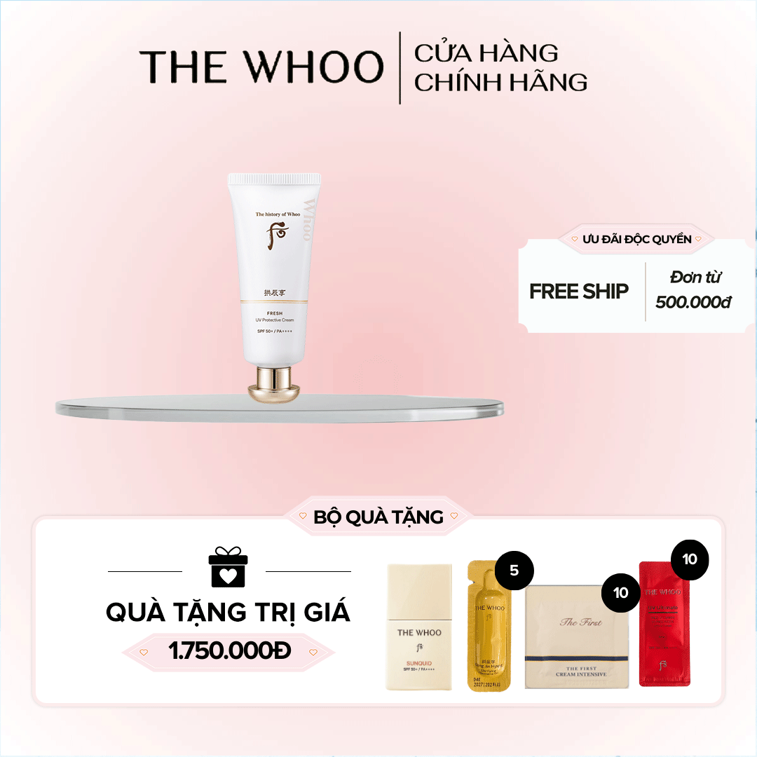 - Kem chống nắng Whoo Vàng có chỉ số chống nắng cao, thẩm thấu đến phần thân bì của da, ngăn chặn UVA, nguyên nhân gây lão hóa.