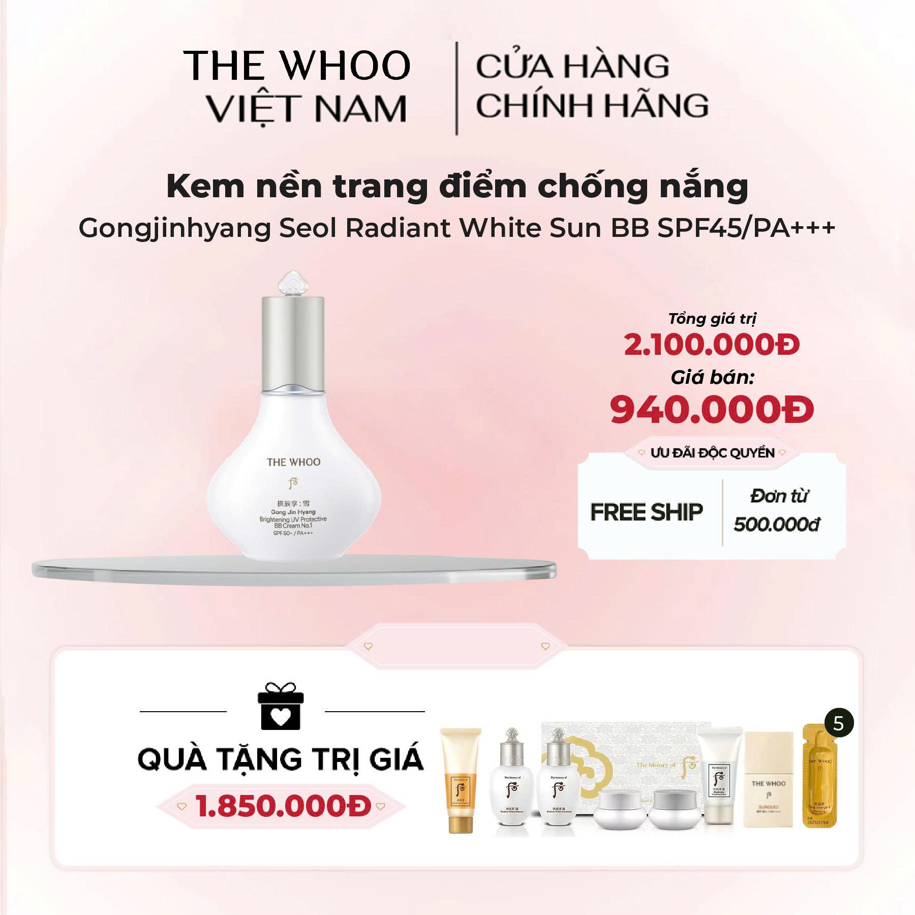 Công dụng của Kem nền trang điểm chống nắng Gongjinhyang Seol Radiant White Sun BB SPF45/PA+++: