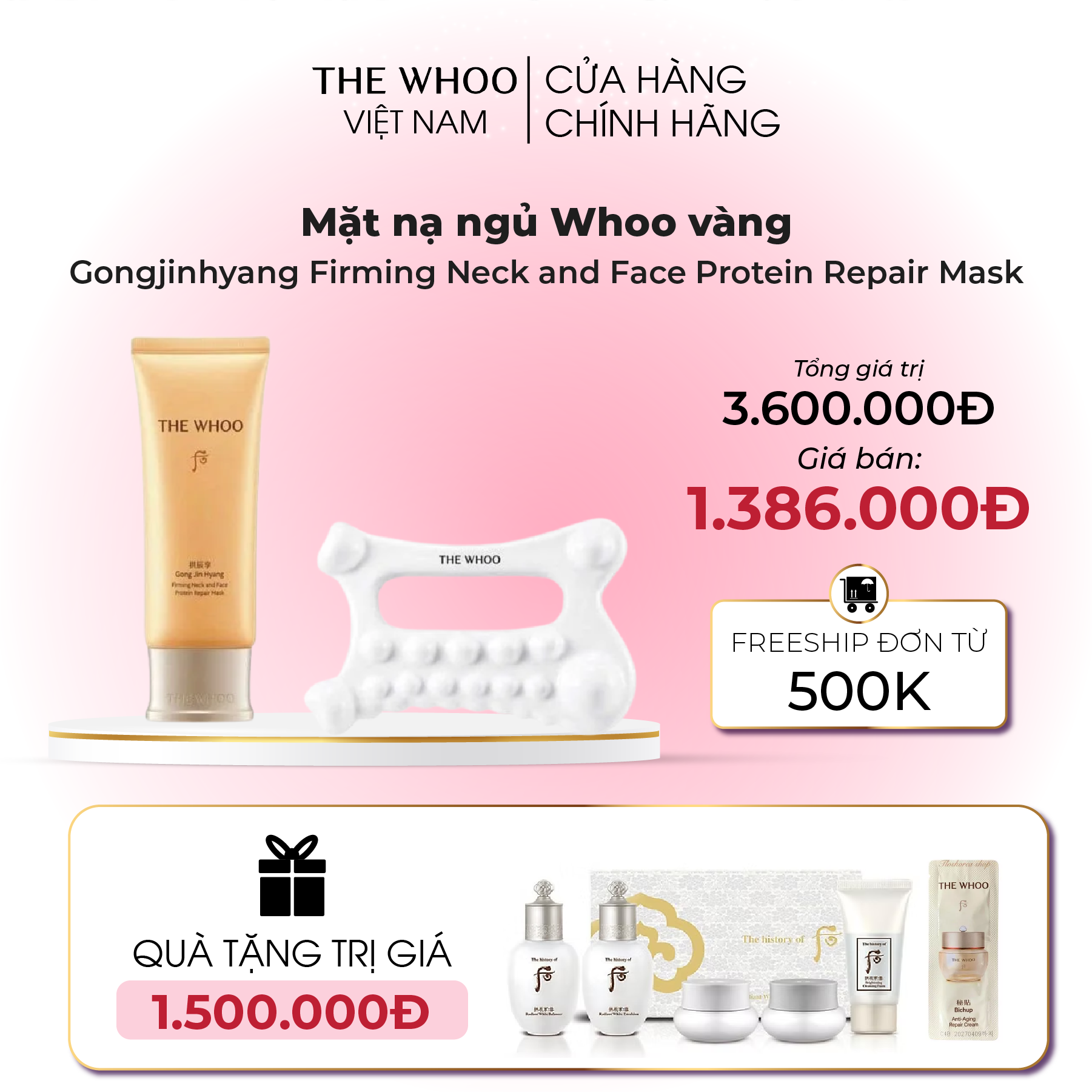 Công dụng của Mặt nạ ngủ Whoo vàng Gongjinhyang Firming Neck and Face Protein Repair Mask