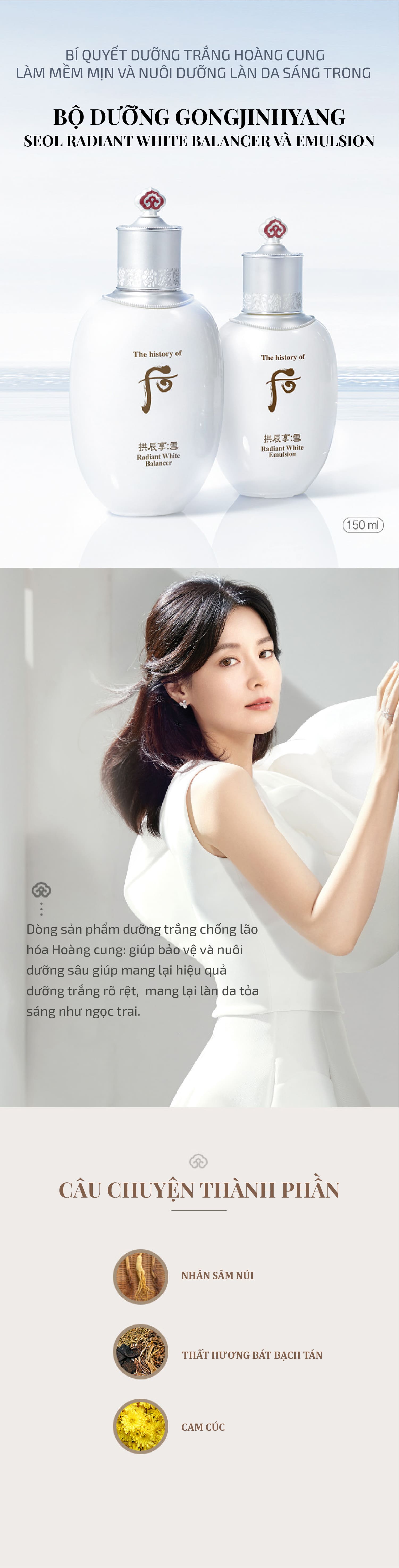 Công dụng của Sữa dưỡng trắng da Whoo Gongjinhyang Seol Radiant White Emulsion:
